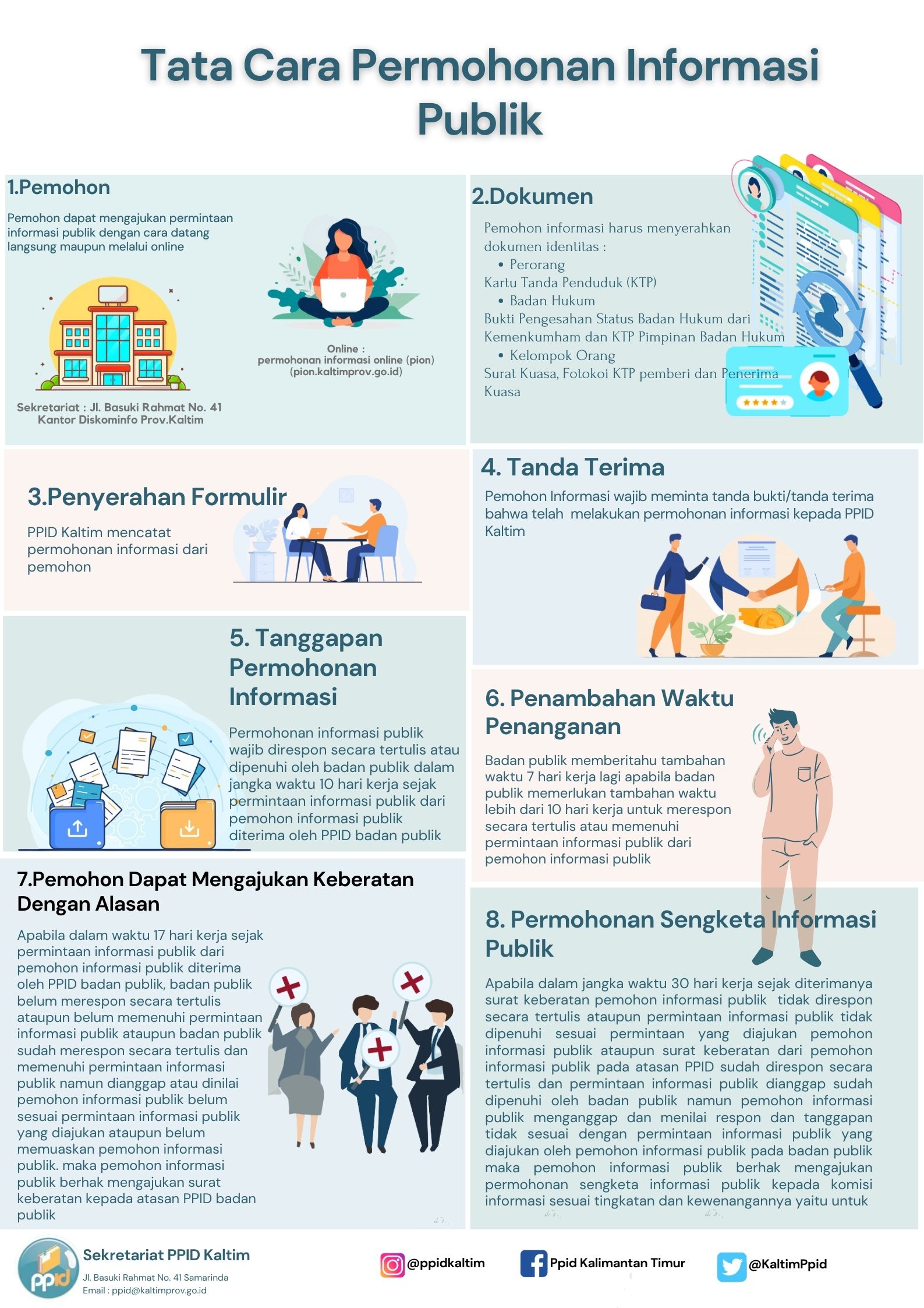 Pemohon informasi publik mengajukan permintaan informasi publik ke badan publik baik dengan cara datang langsung ke kantor badan publik maupun melalui surat elektronik (email), telepon dan pendaftaran permohonan via website badan publik yang menyediakan layanan e-PPID (layanan pengajuan permohonan informasi publik secara online).